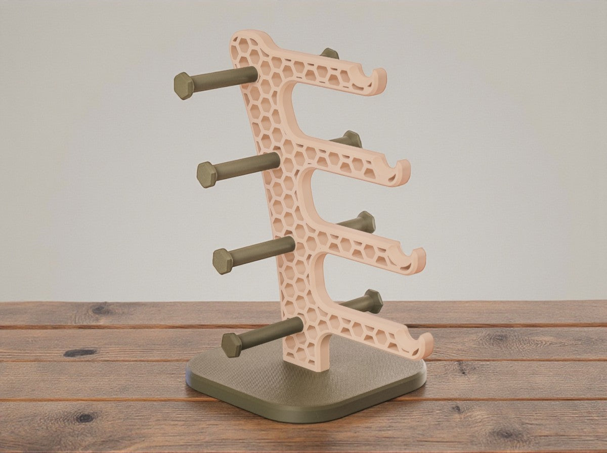 Keep your eyewear organized and on full display with the Shade Stand — a 3D-printed sunglasses holder designed for both function and style. With a sleek honeycomb base and geometric arms, it neatly stores up to four pairs of glasses while doubling as a modern décor piece for your desk, dresser, or entryway.